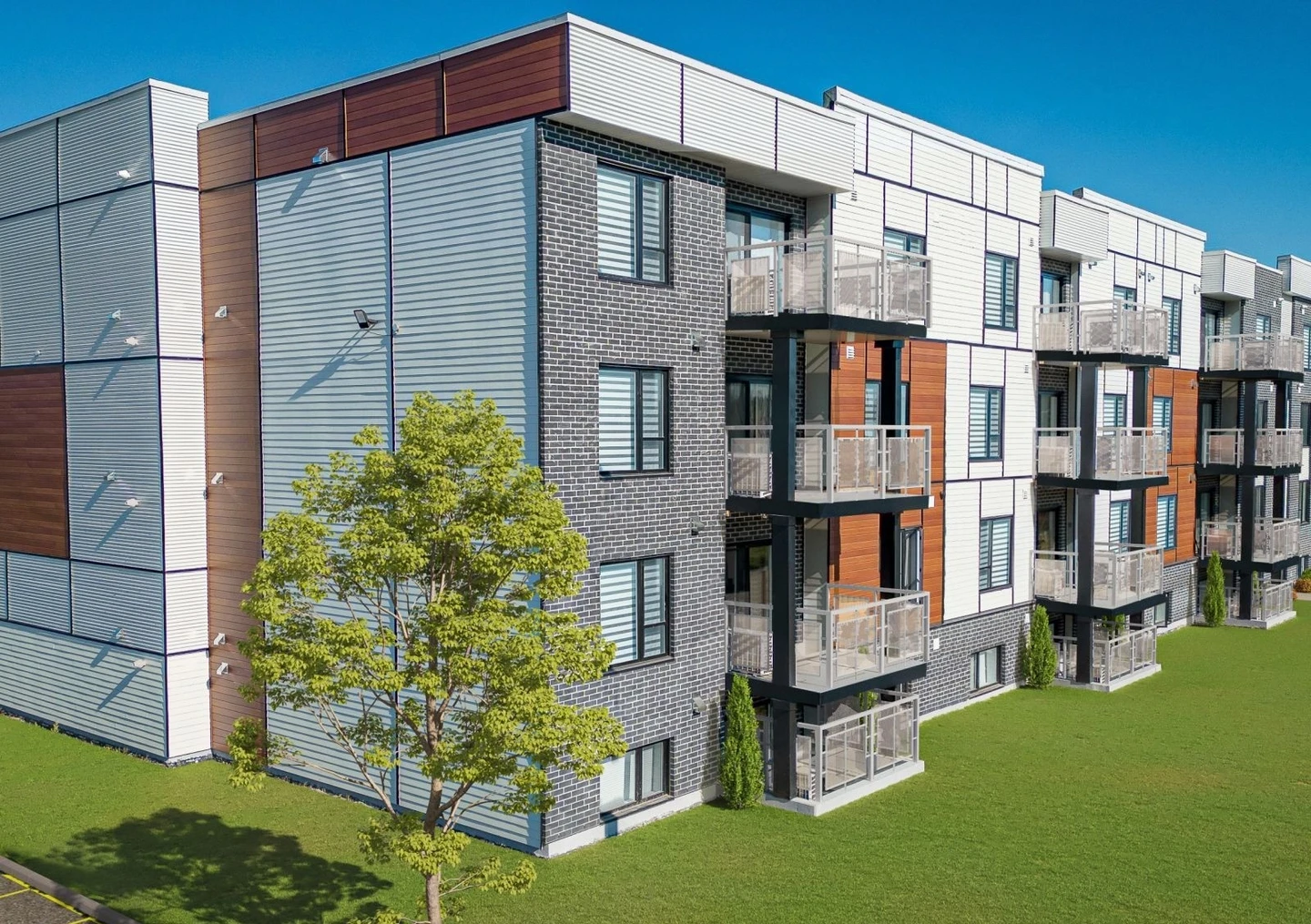 Located at 10075 rue de l’Épervier in Mirabel, in the Saint-Canut sector, this new 2-bedroom condo is part of the residential project Cité H2O. The unit offers a living area of approximately 1,050 sq ft (≈97.5 m²) with occupancy scheduled for summer 2026.