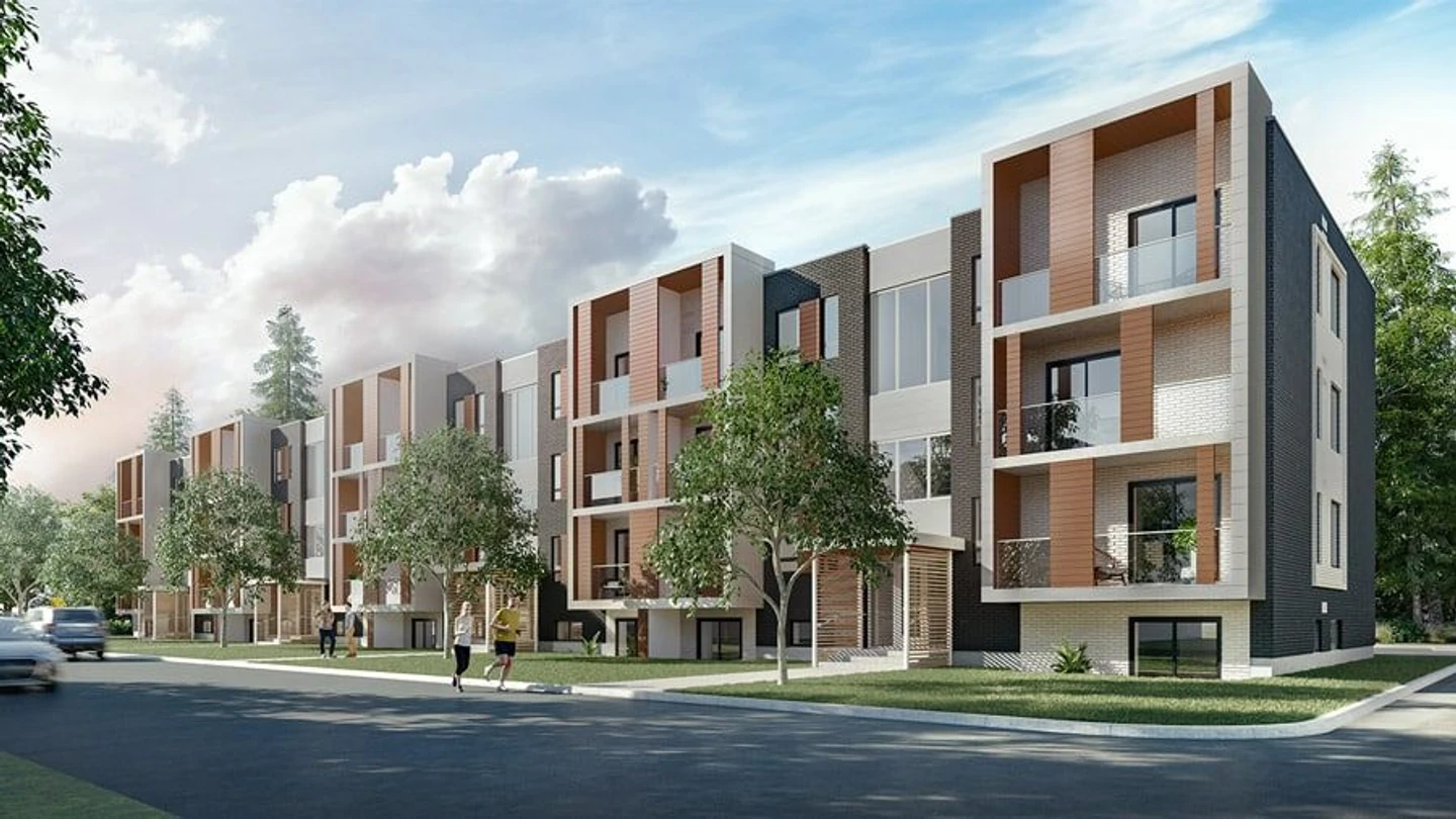 Located on Rue de L’Escarpement in the Val-Bélair sector of Québec City, Agora Val-Bélair is a multi-phase rental residential development set within a predominantly residential neighborhood.