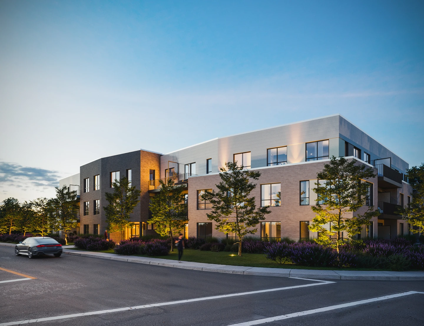 The project offers all-inclusive rental units within a modern building set in a landscaped environment. It is designed to provide a quiet residential setting close to services and major roadways.